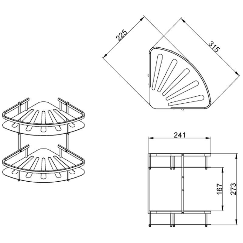 —Полка угловая двухэтажная Azario подвесная,хром (AZ-836-2)
