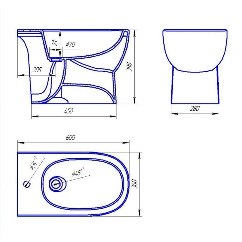 —Биде напольное Sanita Luxe Art в комплекте с креплением (ARTSLBI01)
