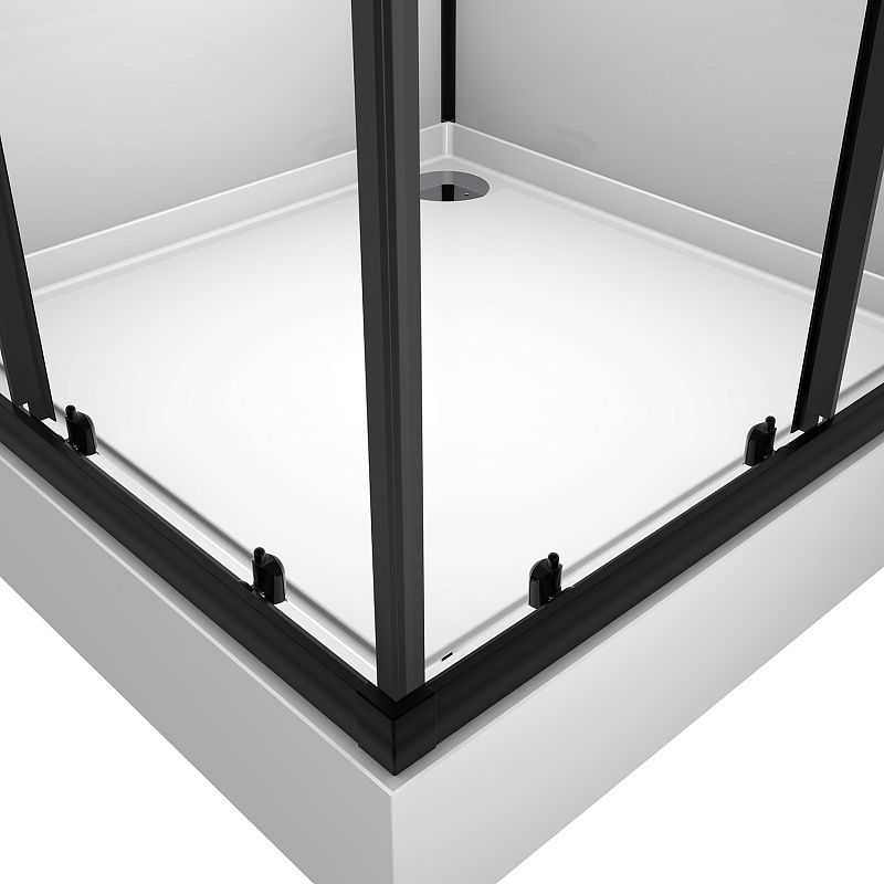 CS-21801Душевая кабина  90x90x(190+15)см c низким поддоном 15см, прозрачное закаленное стекло 5 мм, задние стеклянные стенки БЕЛЫЕ, профиль черный-мат., черный  ручной душ + шланг для душа + черный держатель (3 места)
