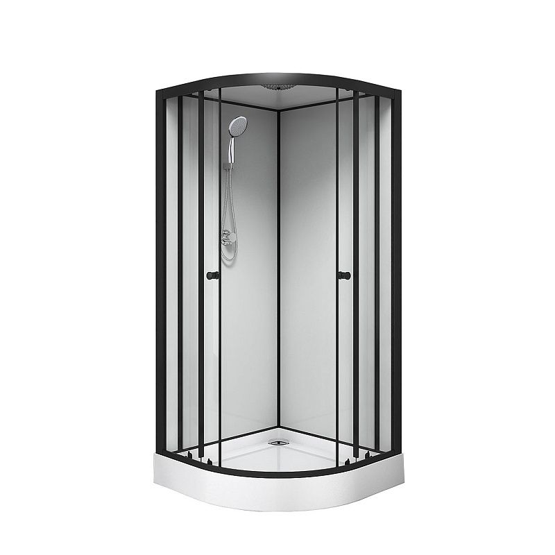 —Душевая кабина Loranto NEO 90x90x(190+15) с низким поддоном 15см, прозрачное закаленное стекло 5 мм, задние стеклянные стенки белые, профиль черный-матовый (CS-22109)