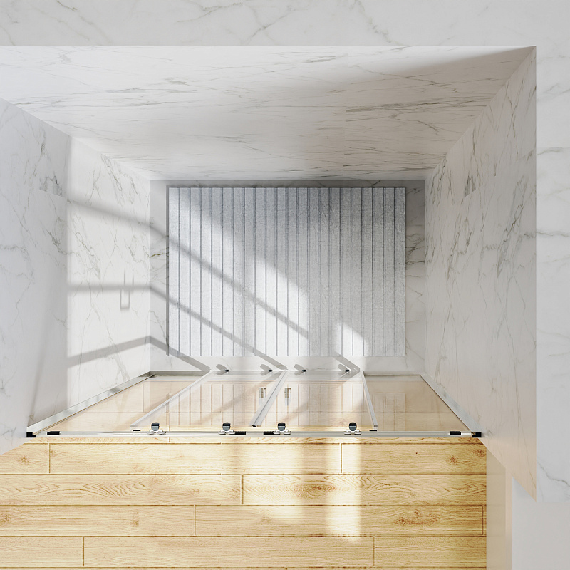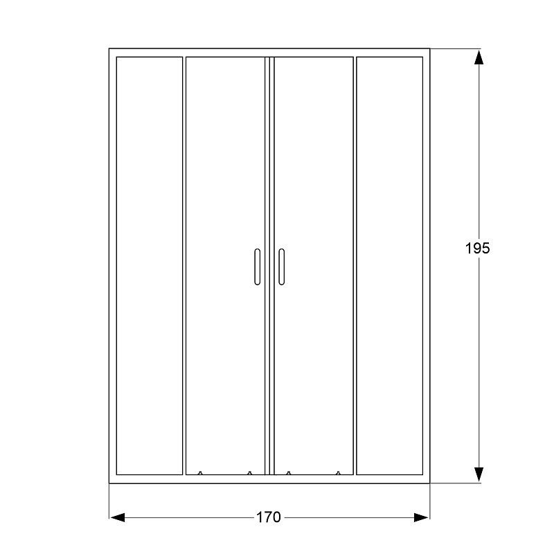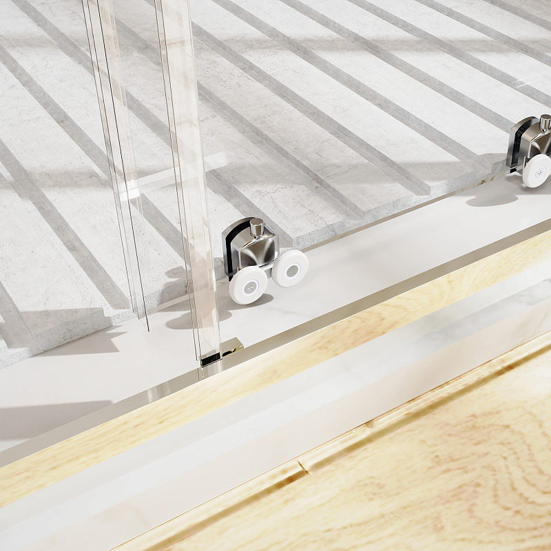 Дверь в нишу шириной 1700 мм., с двумя раздвижными дверьми, на усиленных двойных роликах с нержавеющими подшипниками.