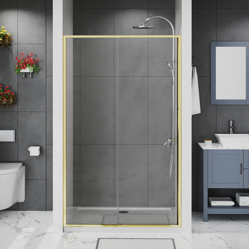 —Душевая дверь Azario Шанхай раздвижная 150х195, толщина полотна 6мм универсальная, цвет профиля брашированное золото