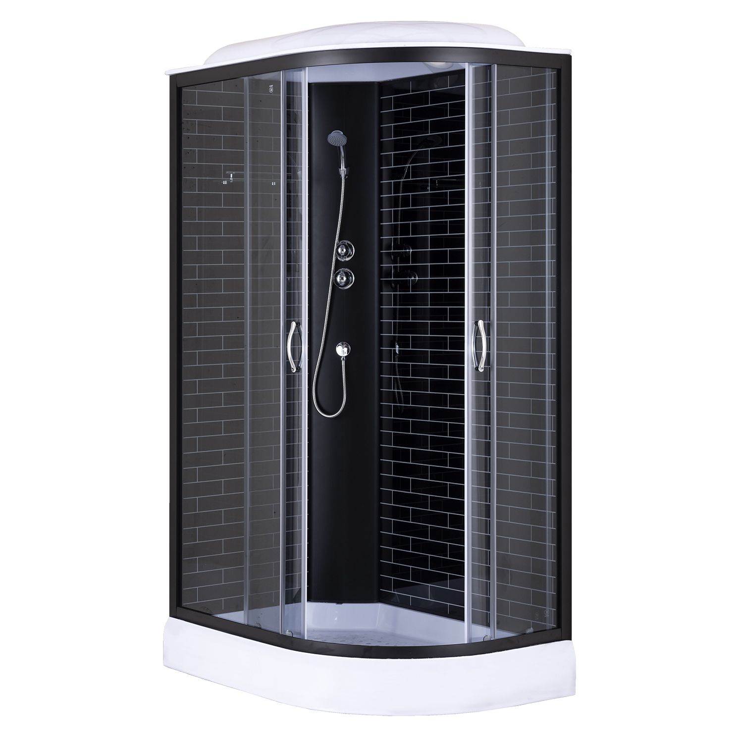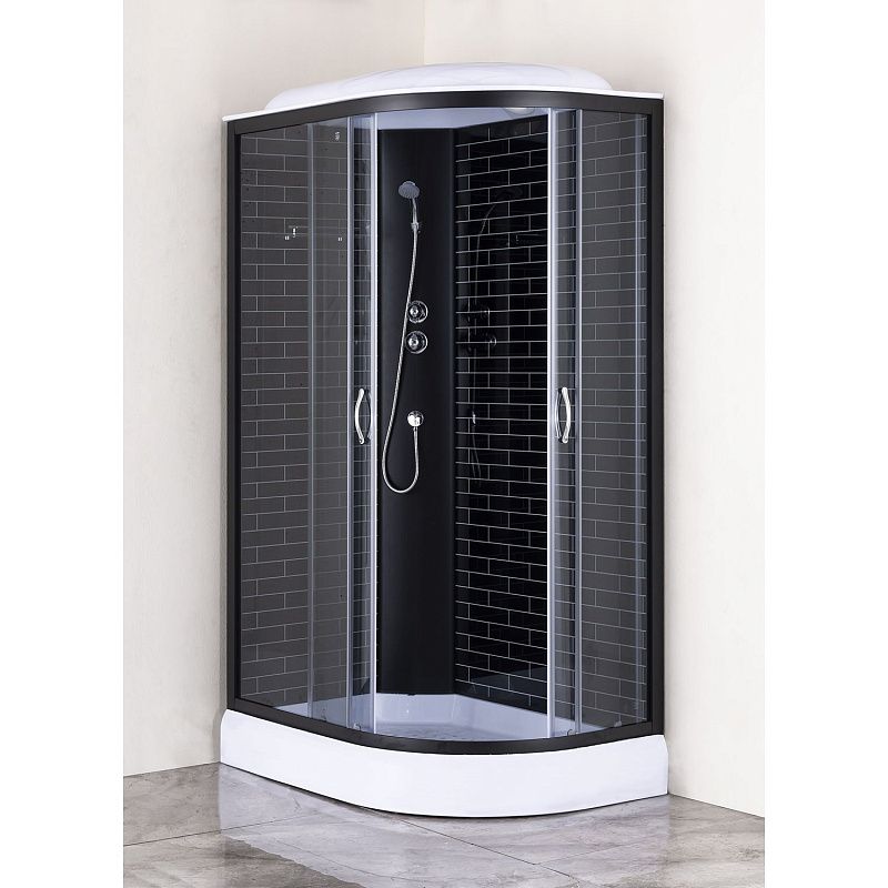 —Душевая кабина Loranto 120х80х215 левосторонняя, поддон 13см, черный кирпичный узор, прозрачное стекло 4мм, профиль черный (CS6612013LGB120)