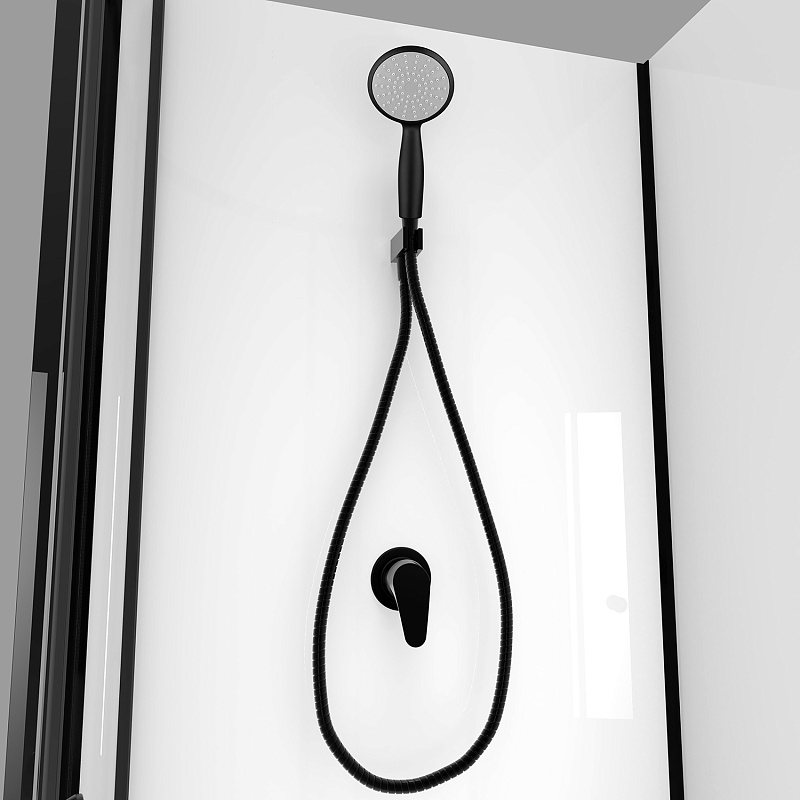 CS-21800-100 Душевая кабина 100x100x(190+15)см с низким поддоном 15см, прозрачное закаленное стекло 5 мм, задние стеклянные стенки БЕЛЫЕ, профиль черный-мат., черный  ручной душ + черный шланг для душа + черный держатель (3места)