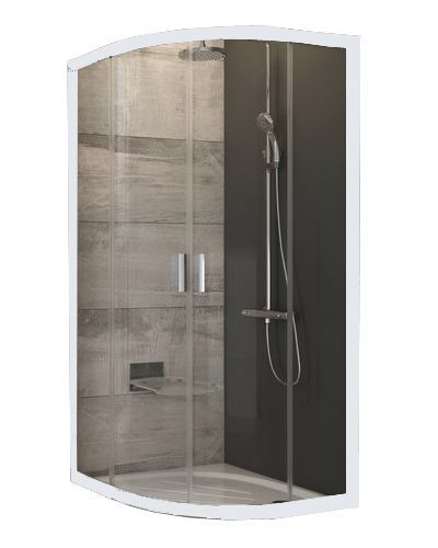 Изделие состоит из двух ровных неподвижных частей и двух изогнутых частей, образующих раздвижные двери. Устанавливается в облицованный кафелем угол ванной комнаты на поддоны RAVAK RONDA, ELIPSO, ELIPSO PRO, ELIPSO PRO FLAT, ELIPSO PRO CHROME или непосредственно на пол со встроенным душевым каналом или трапом.