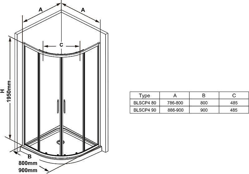 Регулировочные размеры: 886-900x886-900 мм.