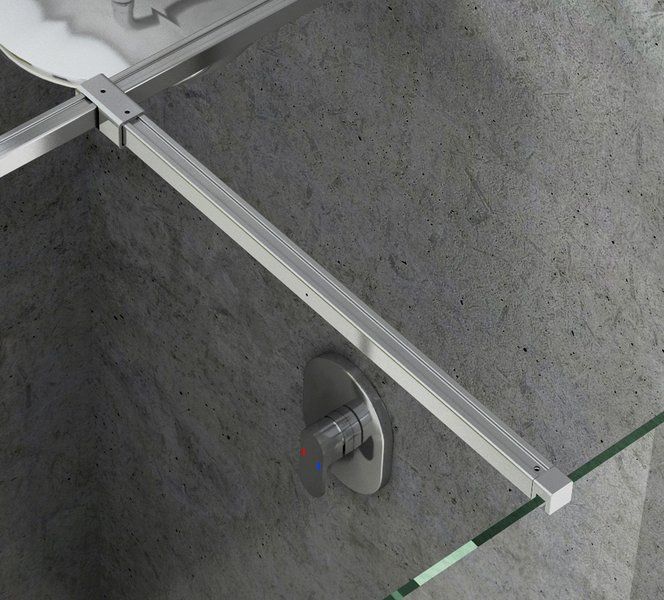 Верхние держатели и нижние фиксаторы стекла надежно удерживают боковую стенку душевого ограждения Walk-In Double Wall и обеспечивают устойчивость всего угла. Длина держателя составляет 1200 мм и может быть укорочена по мере необходимости. Длина держателя W SET-Uni T определяет ширину входа в душевую зону.