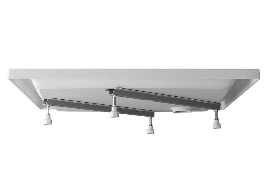 Универсальная опорная конструкция предназначена для всех типов душевых поддонов типа LA (за исключением  поддонов Sabina). Установленный таким образом поддон можно обложить кирпичом и облицевать кафелем. Универсальная опорная конструкция состоит из двух металлических балок (длиной 600, 650 или 750 мм в зависимости от размера поддона) и четырех регулируемых ножек.