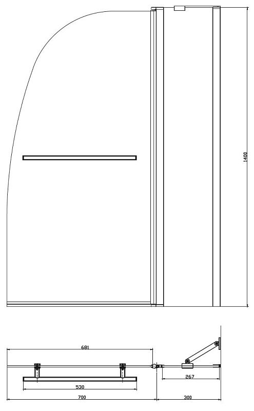 Шторка для ванны Azario Бостон 100*140 с поручнем, хром, прозрачное стекло 6 мм. (AZ-142TB)