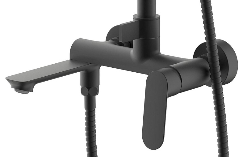 —Душевая система Azario Alanti с квадратным тропическим душем, керамический картридж, шланг 150 см, черный матовый (AZ-K2332-1B)