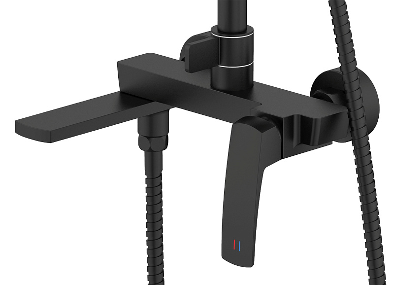 —Душевая система Azario Conda с квадратным тропическим душем, керамический картридж, шланг 150 см, черный матовый (AZ-K2411B)