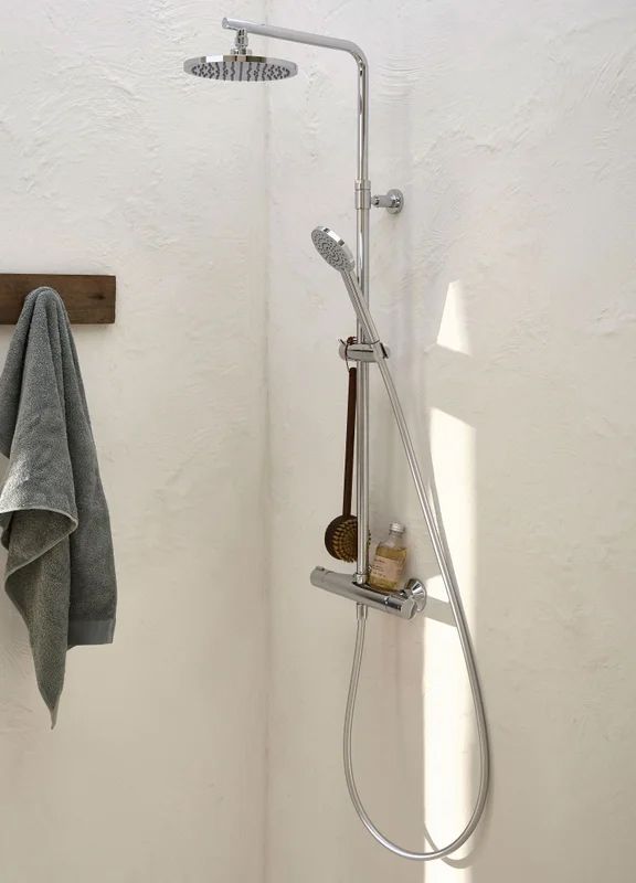 Удобный переключатель, расположенный над смесителем, позволяет легко переключаться между верхним и ручным душем.