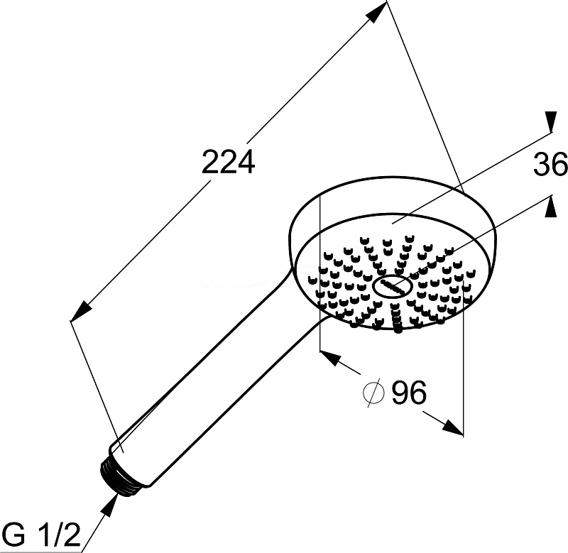 Диаметр ручного душа 96 мм.