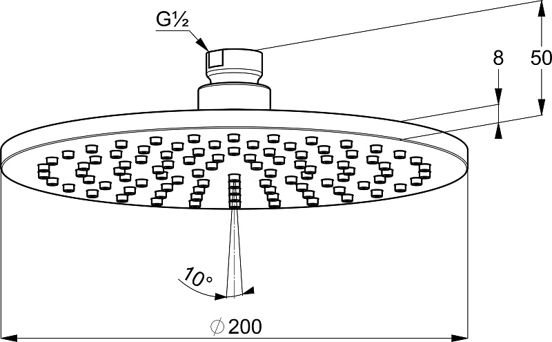 Диаметр верхнего душа: 200 мм.