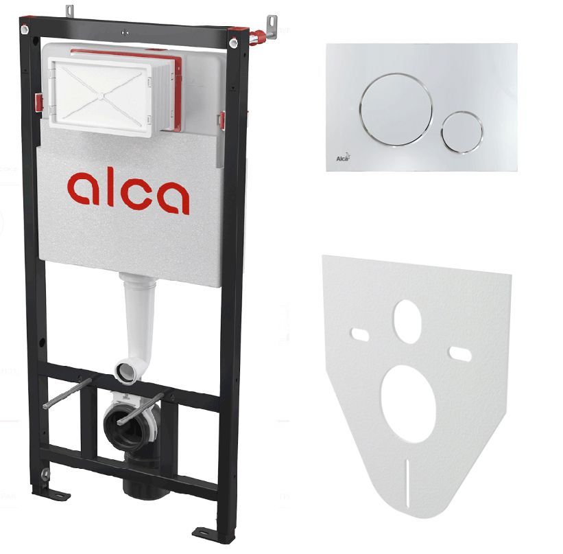 Инсталляция Alcadrain AM101/1120-4:1 RU для унитаза с клавишей смыва M671 хром глянец (AM101/1120-4:1 RU M671-0001)