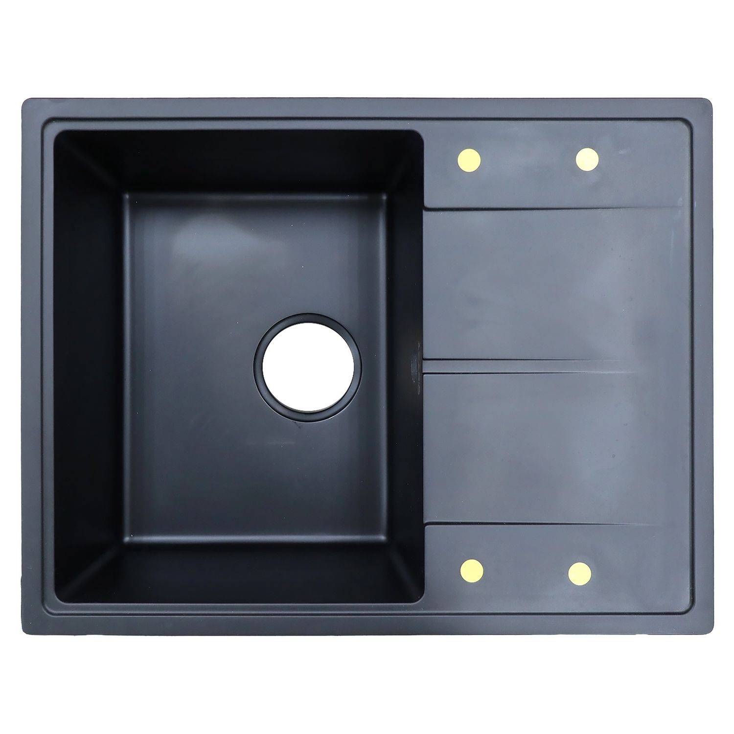 Кухонная мойка AZARIO Tavas 620х480х197 кварцевая, прямоугольная, сифон в комплекте, цвет Черный (CS000976724)
