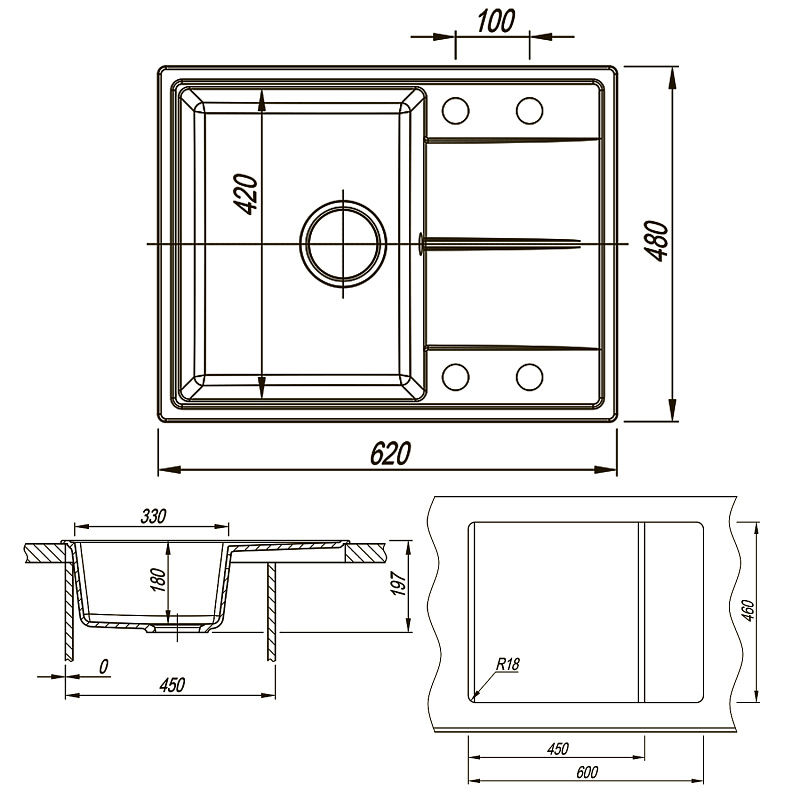 —Кухонная мойка AZARIO Tavas 620х480х197 кварцевая, прямоугольная, сифон в комплекте, цвет Черный (CS000976724)