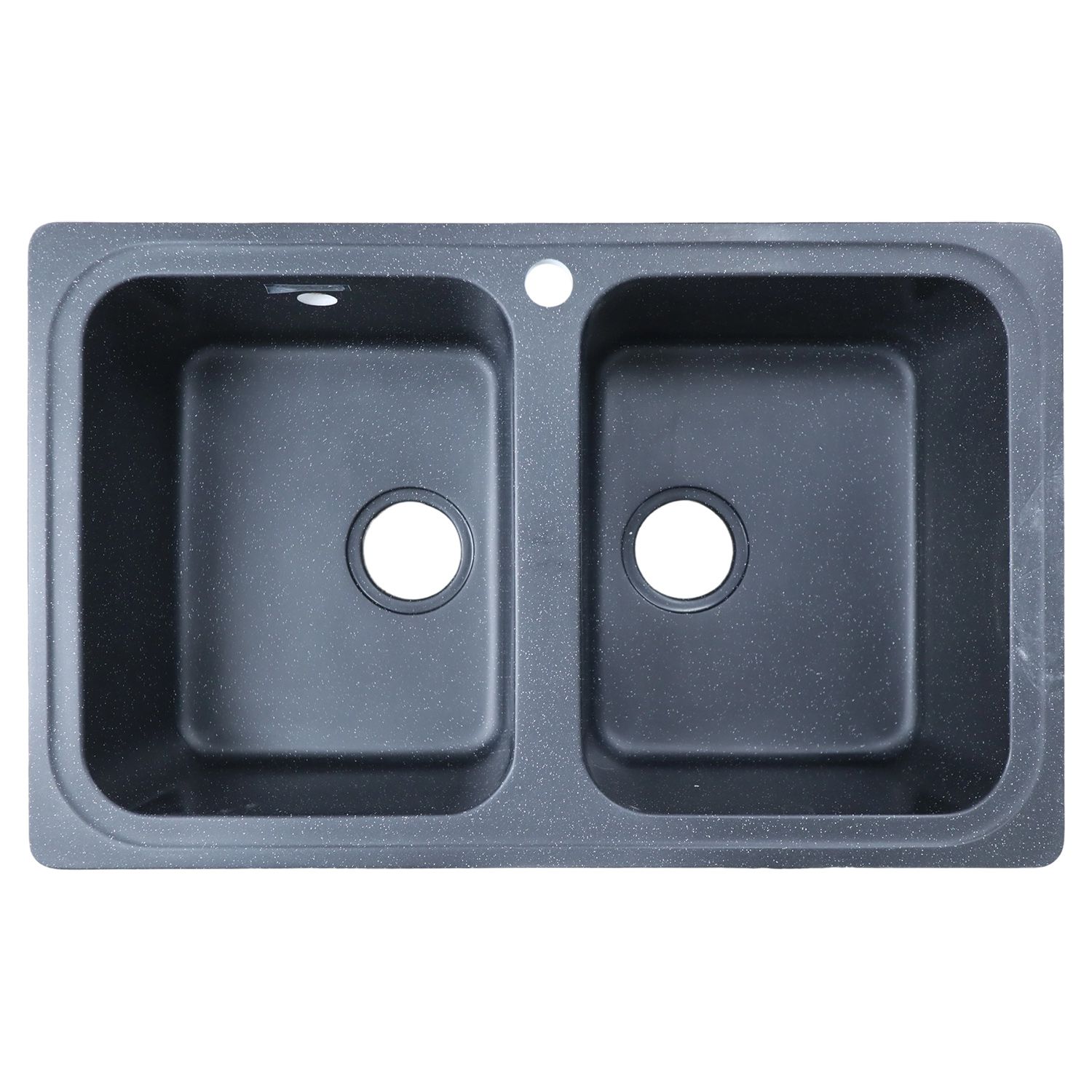 —Кухонная мойка AZARIO Alba 780x490x190 двойная, искусственный мрамор, сифон в комплекте, цвет черный (CS00105217)