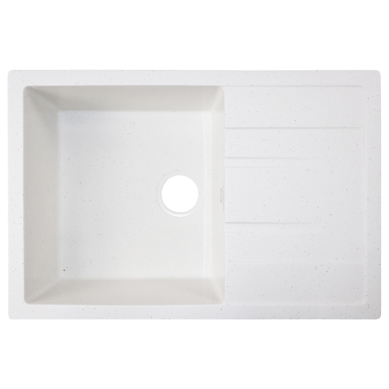—Кухонная мойка AZARIO Rio 750x505x185 искусственный мрамор, с "крылом", сифон в комплекте, цвет белый крап (CS00105231)