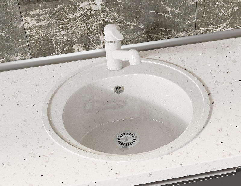 Кухонная мойка AZARIO Solo 505x505x190 искусственный мрамор, сифон в комплекте, цвет белый крап (CS00105233)