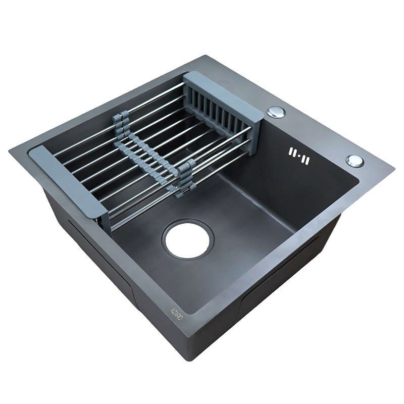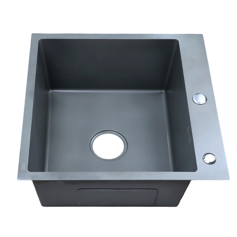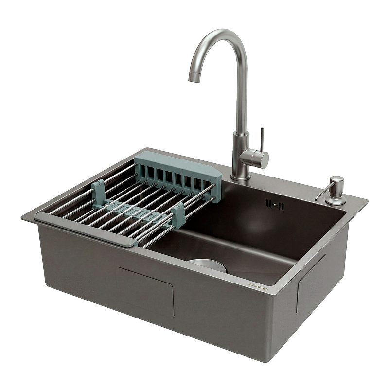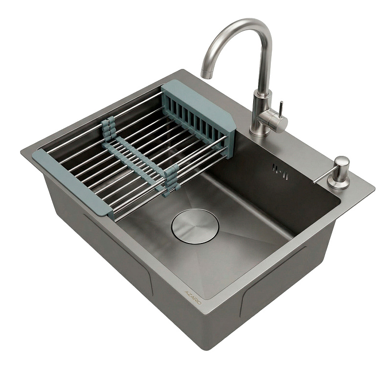 —Кухонная мойка AZARIO NICOLE 500х500х220 нержавеющая сталь, в комплекте сифон, диспенсер, коландер, серая соты (AZG5050H)