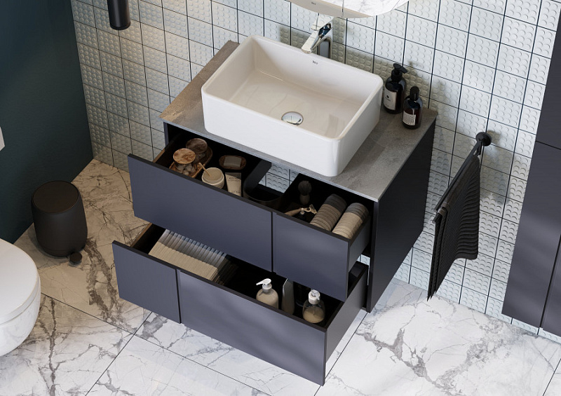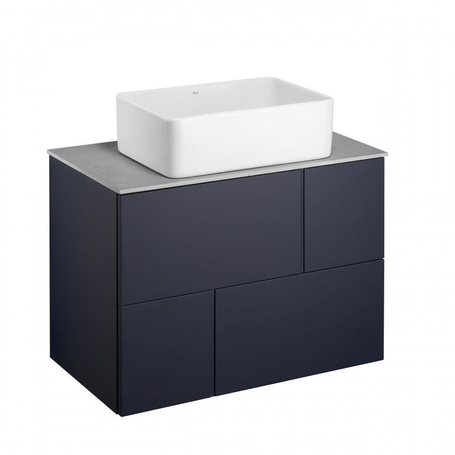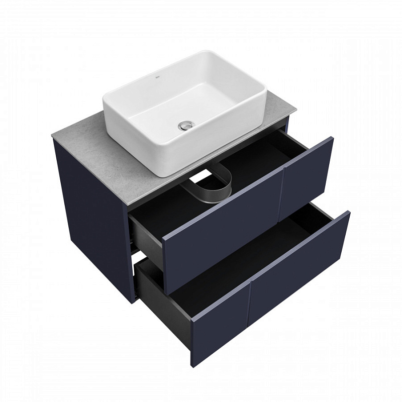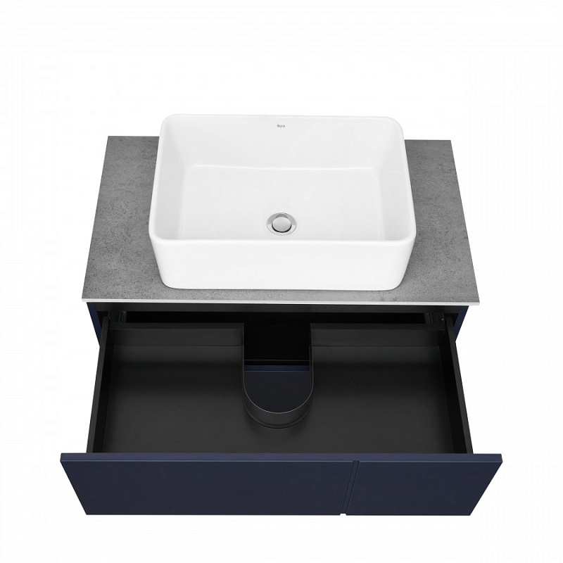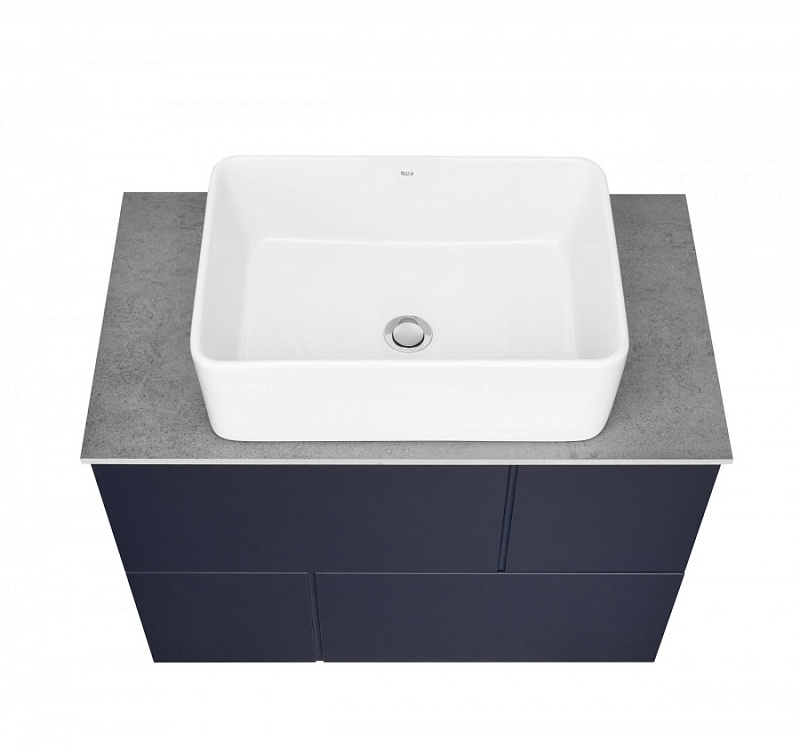 —Комплект: Тумба под раковину Roca Pilar 80 подвесная, 2 ящика + Столешница Roca Pilar 80, керамогранит, серая + раковина накладная MILA, синий (Z.RU93.1.044.9)