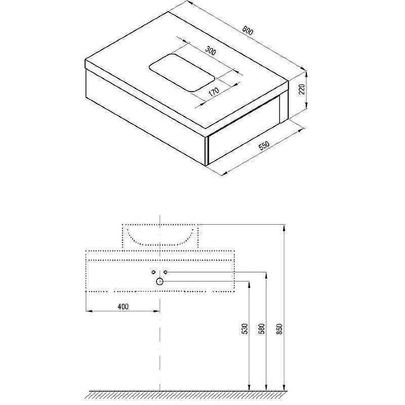Размеры (ШxВxГ): 80x22x55 см.