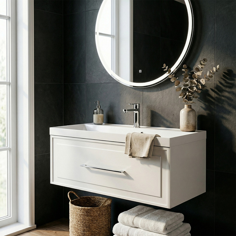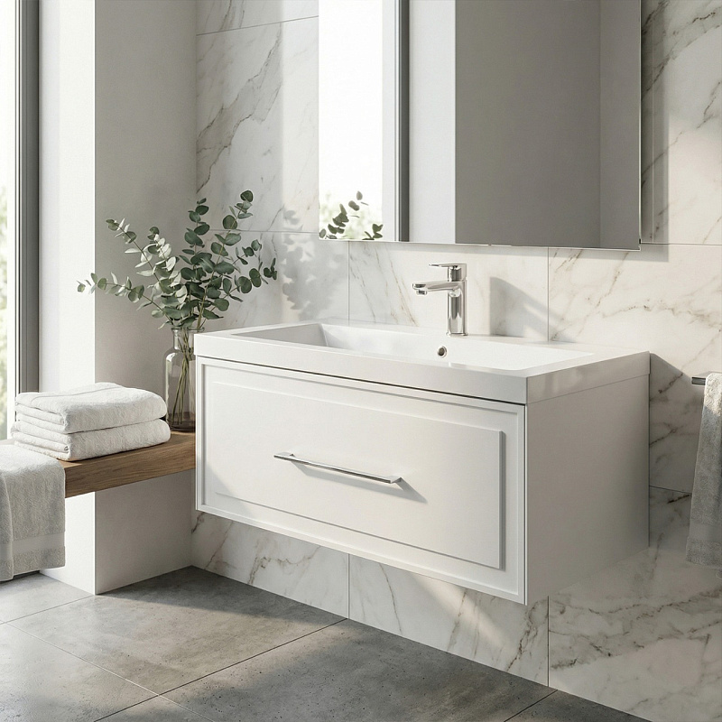 —Комплект Тумба Azario Belloni 100 1000х450х400 подвесная, с раковиной Астория 100, белый матовый (CS00098072)