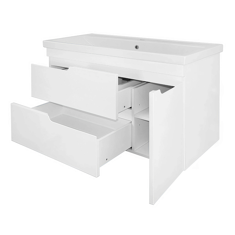 —Комплект Тумба Azario KANTRI 100/2 1005х455х870 подвесная, дверь с раковиной Фостер 100, белый глянец (CS00097258)