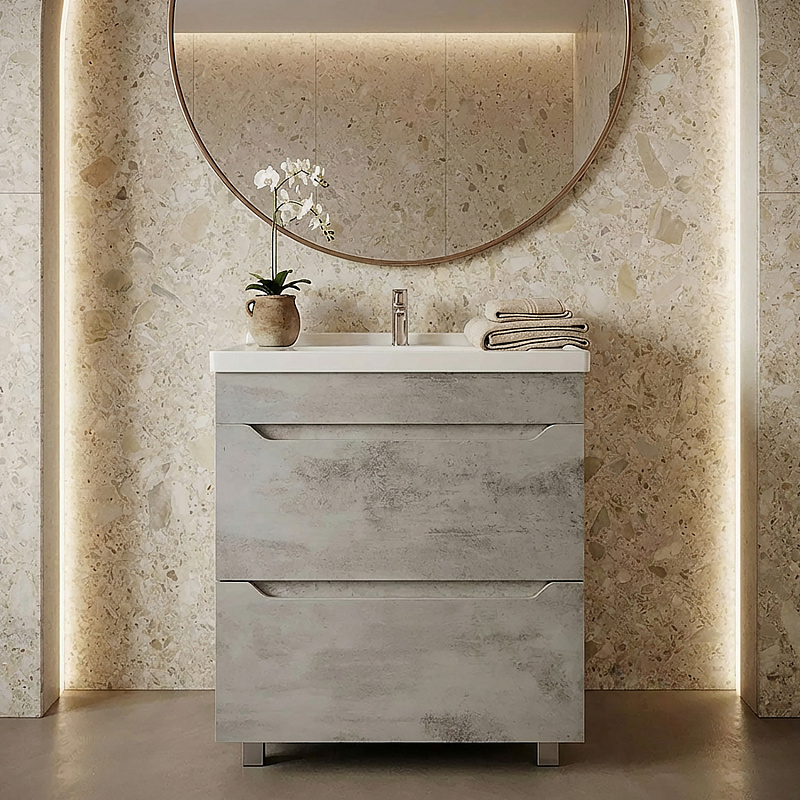 —Комплект Тумба Loranto Florena 60 600х470х810 напольная, с раковиной MONTE Neo 60, светлый бетон (CS00105569)