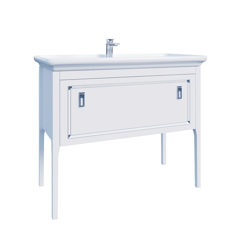 —Комплект Тумба Azario RIO 105/1Н напольная, с раковиной Дуглас 105, ручки серебро, цвет белый глянцевый (CS00096983)