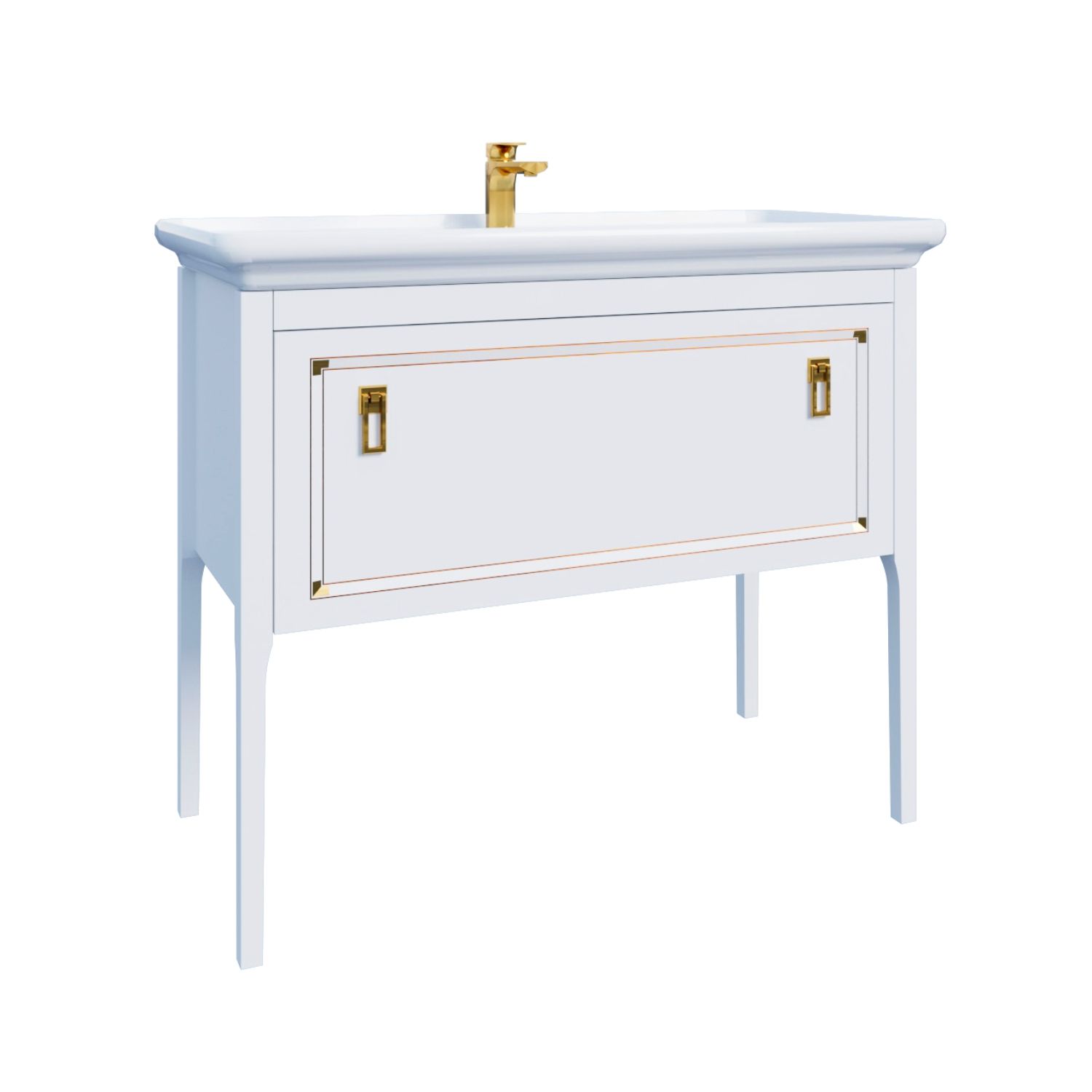 Комплект Тумба Azario RIO 105/1Н напольная, с раковиной Дуглас 105, ручки золото, цвет белый глянцевый (CS00096985)