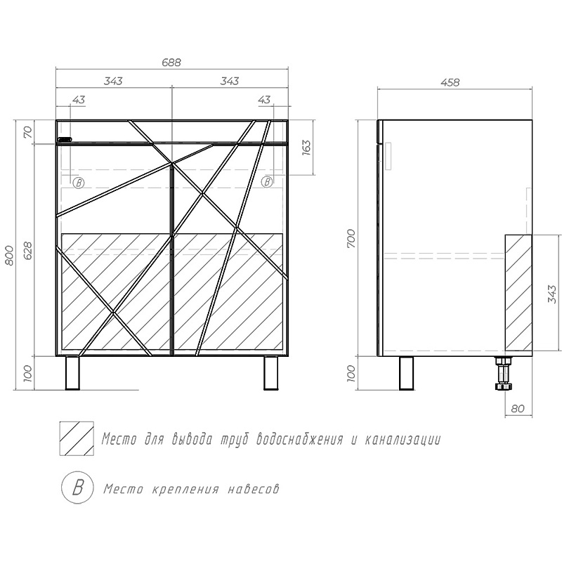 Для крепления изделия к стене используются регулируемые навесы.