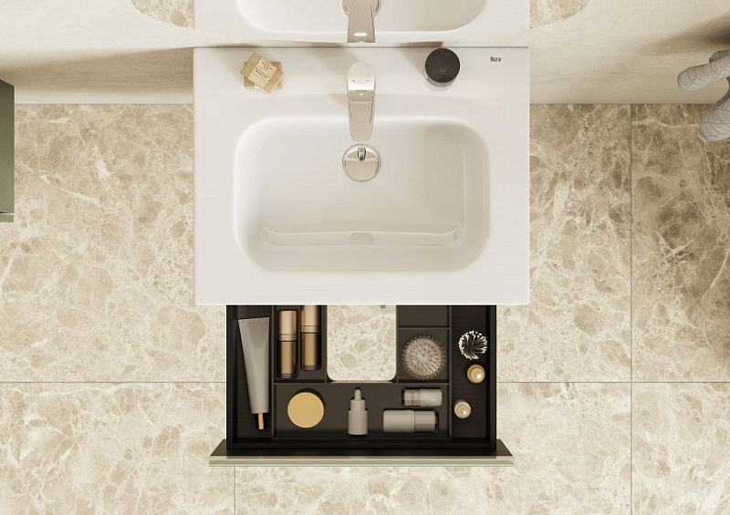 Погрузитесь в атмосферу Средиземноморья в вашей ванной комнате вместе с коллекцией Ona. Внутри коллекции Ona теперь есть лимитированная серия Ona Ivory и Ona Olive. Пленка, применяемая в данных коллекиях имеет ребристую тактильно приятную поверхность. Волнистый рельеф мебели создаёт ощущение движения и гармонии с природой: рябь на воде или отпечатки ветра на песчаных просторах. Цвета натуральных оттенков, такие как оливковый и слоновая кость, напоминают о бархатистом песке и молодой зелени, а их тёплые оттенки создают уютную атмосферу. Влагостойкие материалы и пленки от европейских производителей – это красота, долговечность и безупречный вид мебели на долгие годы. Описание товара Модули Ona обладают следующими характеристиками и преимуществами. Удобная металлическая профильная ручка во всю ширину модуля обеспечивает легкость открывания ящиков и защиту фасадов от влаги, ударов и износа. В обоих ящиках находятся противоскользящие коврики, а верхний ящик снабжен также встроенной организацией пространства – эстетика и идеальный порядок в ванной комнате. Комфортное и долговременное использование мебели гарантировано благодаря направляющим Hettich полного выдвижения и плавного открывания и закрывания, протестированных на 60 000 циклов. Навесы входят в комплект и выдерживают нагрузку 100 кг, а также обладают функцией регулировки, которая позволяет скомпенсировать неровность стен и установить мебель ровно. Модули Ona комплектуются раковинами Ona из долговечного композитного материала.