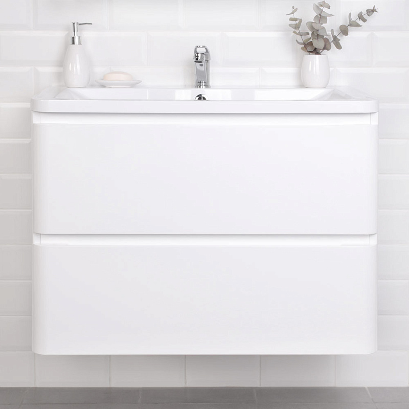 Комплект тумба Итана Roberto 80 (795х56х06) подвесная, с раковиной Adel 80, белый глянец (375043)
