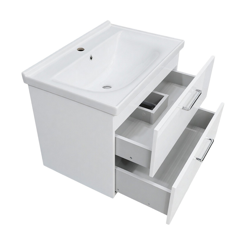Подвесная конструкция: Тумба Ника 70 имеет подвесную конструкцию, что придает ванной комнате ощущение простора и легкости, а также значительно облегчает уборку пола.