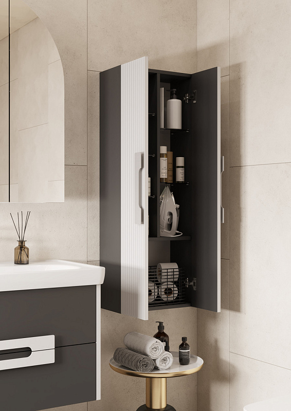 Пенал подвесной AQUATON Ар-Деко, 2 створки, серый кобальт (1A284703DD8D0)