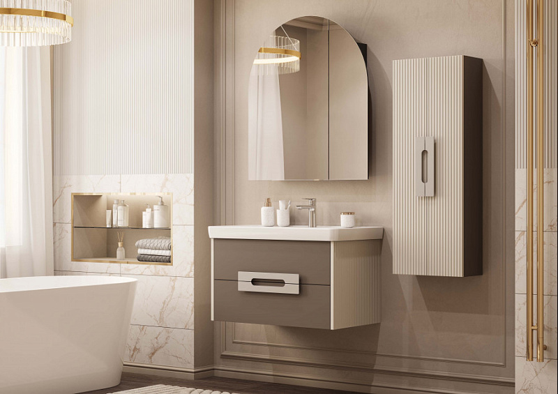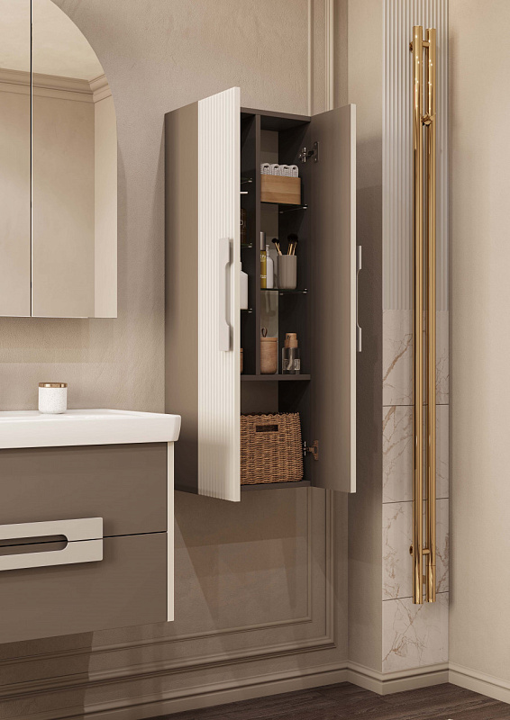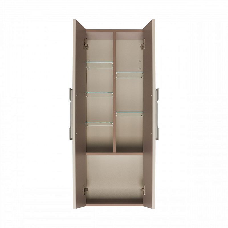 Коллекция мебели Ар-Деко воплощает изящество и элегантность этого уникального направления. Каждая деталь коллекции от массивных хромированных ручек до фрезерованных панелей - продумана до мелочей. Двустворчатая шкаф-колонна выполнена из высококачественной МДФ, покрытой матовой пленкой. Вертикальная фрезеровка на фасадах создает эффект визуального увеличения высоты изделия, придавая ему элегантность и изящество. В шкаф-колонне внутреннее пространство разделено на две половины, в каждой из которой есть регулируемые стеклянные просветленные полочки. Эти полочки также установлены на специальных держателях, что предотвращает опрокидывание предметов. Фасады-створки открываются при помощи удобной ручки, а благодаря петлям с доводчиками обеспечивается плавное закрывание, что гарантирует бесшумность и комфорт использования мебели. Дополнительное пространство предусмотрено для хранения высоких предметов, высота полезного пространства - 300 мм.