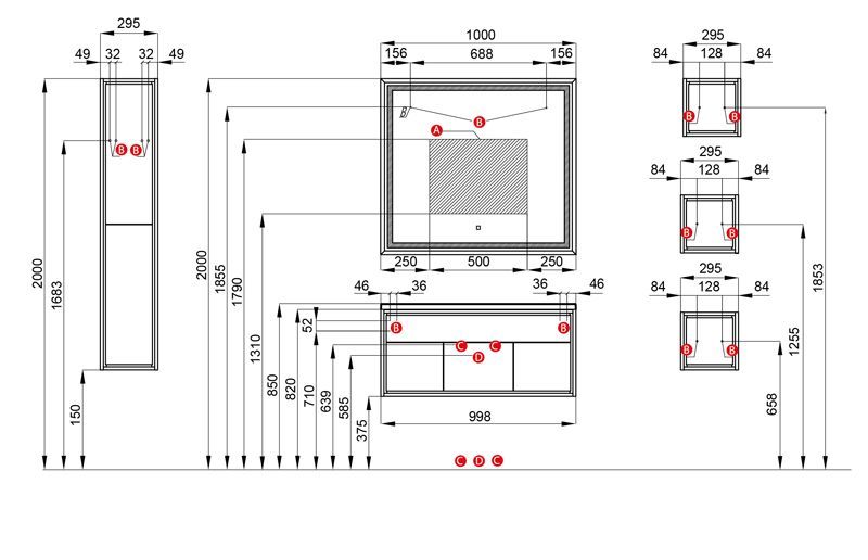 Зеркала-шкафыКомплектыПолкиСветильникиСтолешницыТумбы под раковинуКомплектующие