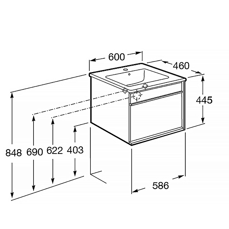 —Тумба под раковину Roca ANETO 600 подвесная, белый (7.8574.2.980.6)