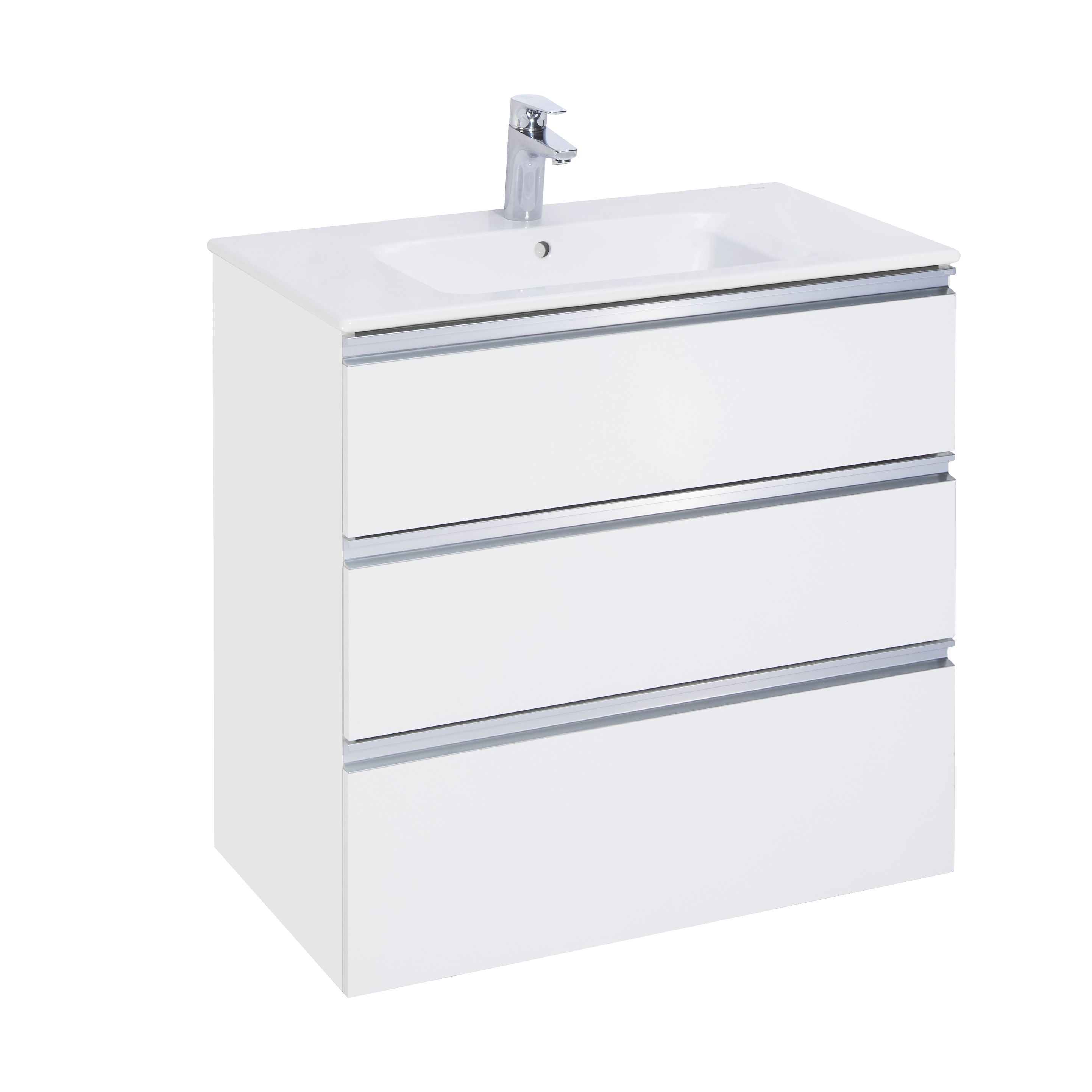 Модуль под раковину THE GAP в цвете белый глянец обладает универсальным современным дизайном и функциональностью. Металлическая ручка во всю ширину модуля удобна в использовании и вместе с направляющими с функцией soft-close делает процесс открывания ящиков легким и приятным. Нижняя часть ручки обработана под углом, что предотвращает скопление воды и пыли. Ручка защищает фасады модуля от попадания капель воды с раковины, а также защищает углы модуля от ударов и износа. Внутренняя отделка ящиков выполнена в цвете бежевый текстиль, приятна на ощупь и предотвращает скольжение предметов. Пространство верхнего ящика разделено на три части, что позволяет хранить предметы для ванной комнаты в идеальном порядке. Благодаря универсальному дизайну модули под раковину THE GAP могут сочетаться с различными вариантами зеркал и зеркальных шкафов из коллекций THE GAP ORIGINAL, ANETO, VICTORIA NORD. Сифон для раковины и набор ножек приобретаются отдельно.