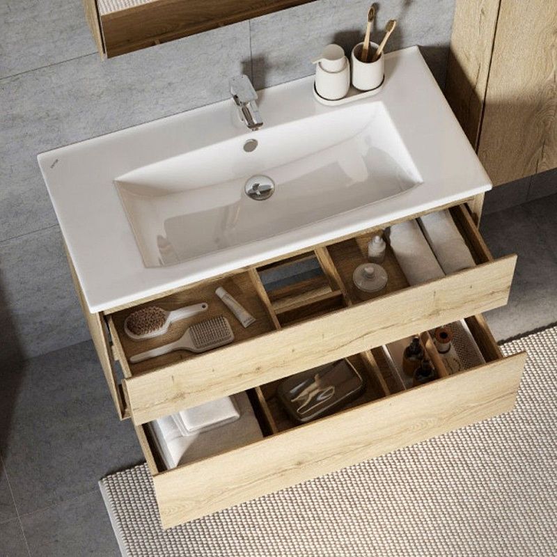 Ящики открывваются одним нажатием, так как оснащены механизмом Push-to-Open, гарантирующим плавное открывание и закрывание. В тумбах с ящиками размером от 70 см предусмотрена регулируемая система хранения, которая позволяет организовать пространство внутри ящика максимально эффективно. Это обеспечивает комфортное хранение вещей в ванной комнате.