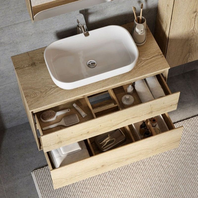 Тумбы Либерти с 2 ящиками могут быть дополнены мебельной раковиной “Элина”, которая отличается вместительной чашей и изящными бортами. Также они совместимы с накладными раковинами Roca Mila и Santek Одри Soft.
