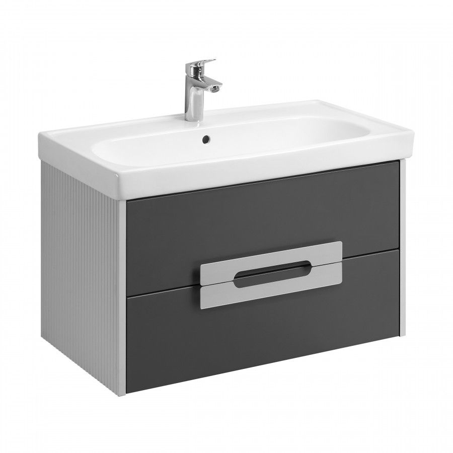 Тумба под раковину AQUATON Ар-Деко 85 подвесная, 2 ящика, серый кобальт (1A280401DD8D0)