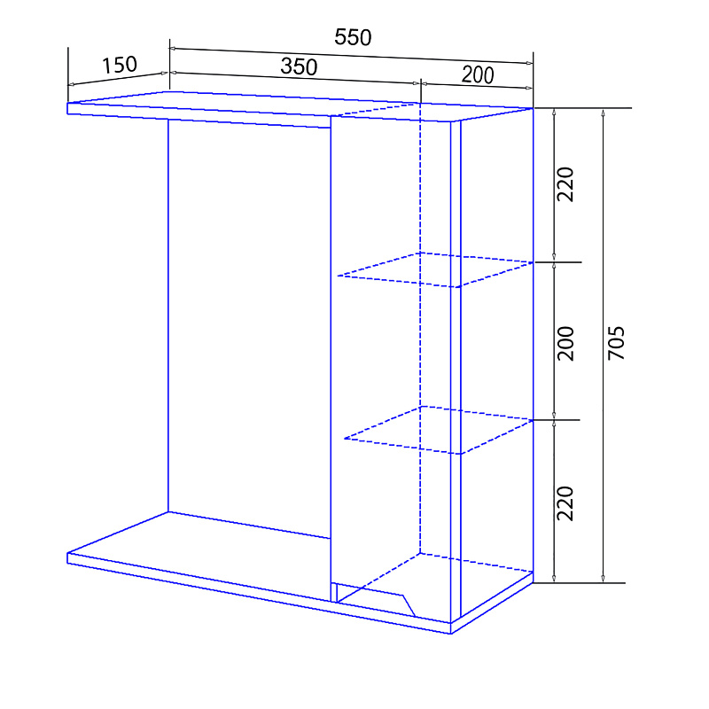 фасад на доводчиках, две полочки внутри.