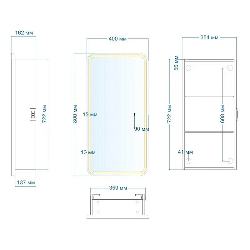 Размеры (ШхВхГ): 400х800х160 мм.