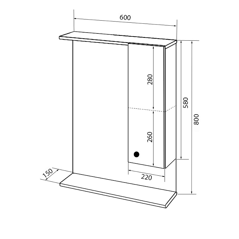 —Зеркало-шкаф Loranto Моника 60 600х800х150 без светильника, правостороннее (CS00047790)