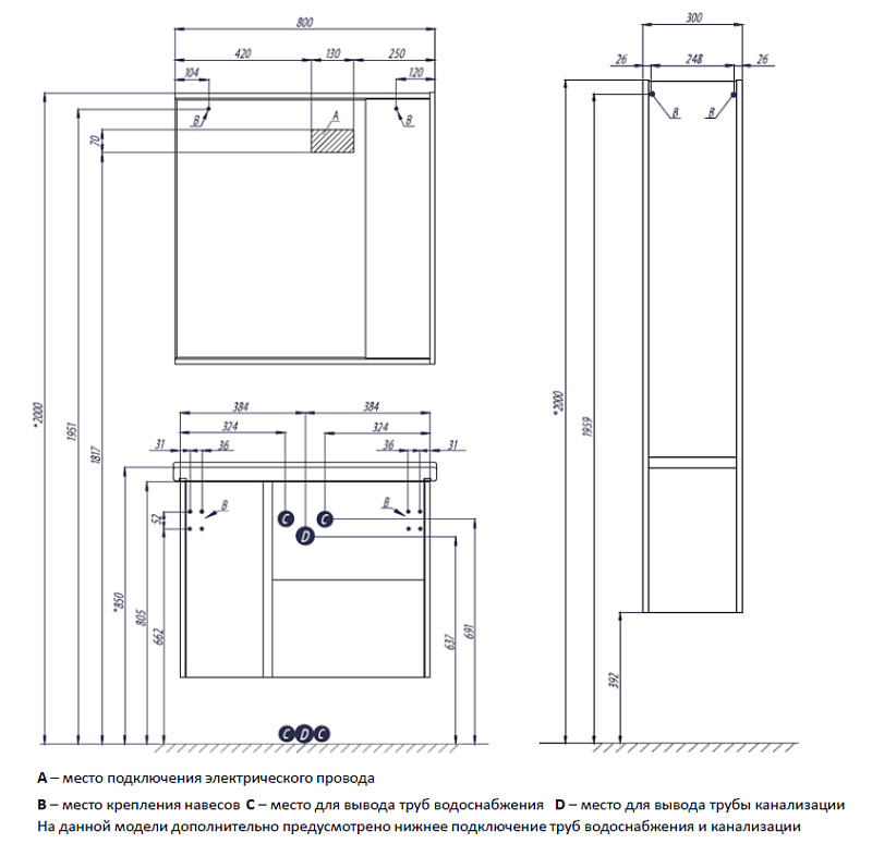 Комплектация зеркального шкафа:
