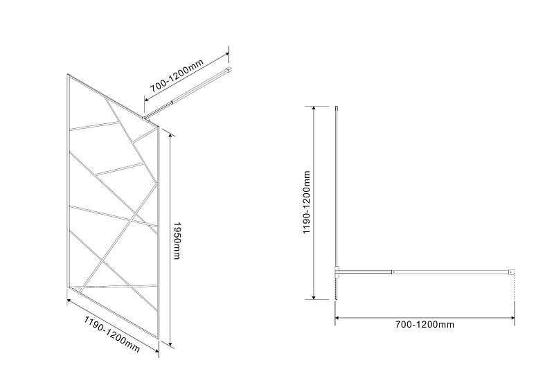 —Душевая перегородка Azario Walk-in 1200x1950 в рамке, рифленое стекло, толщина стекла 8 мм, профиль черный матовый (AZ-271-120-MВ-CRF)