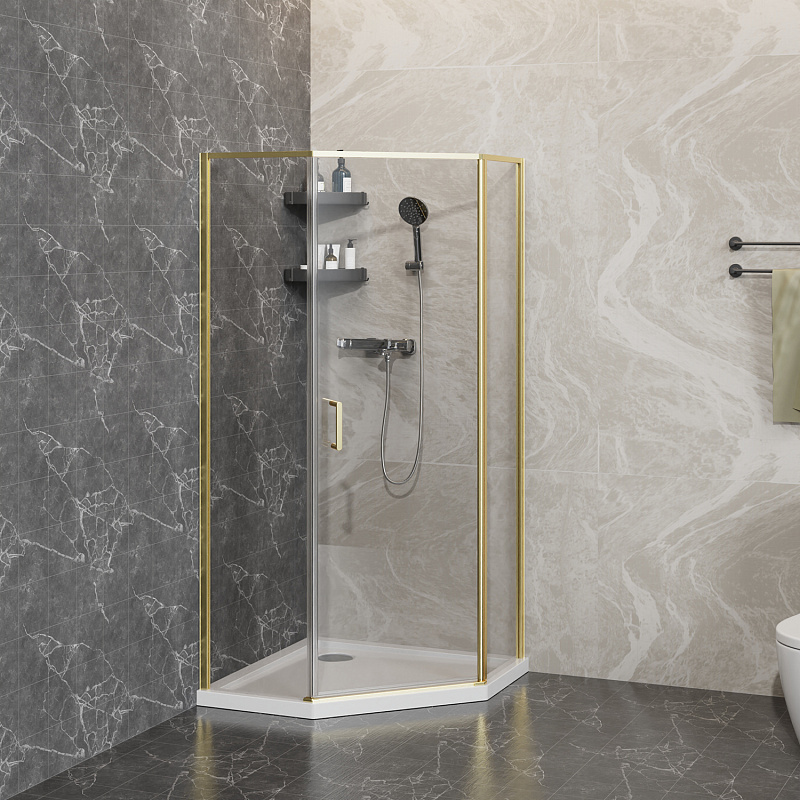 Душевое ограждение Azario SAKURA 1000х1000х1950 прозрачное стекло 6 мм, профиль брашированное золото (AZ-21C-100-BGL-CL)
